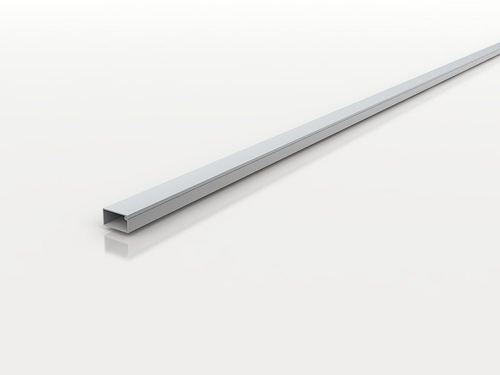 - Minicanal mural con tapa integrada, en el que la tapa queda integrada dentro del conducto, con la posibilidad de abrirla a modo de trampilla gracias a una suave extrusión de PVC.
